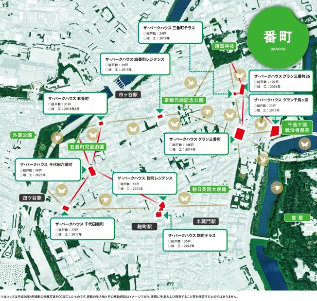 東京都千代田区番町エリアで分譲している9物件において、ビッグデータ分析で予想された鳥が飛来しているかを確認するために、現地モニタリング調査を実施しました。(2024年・2025年実施済、2026年実施予定)