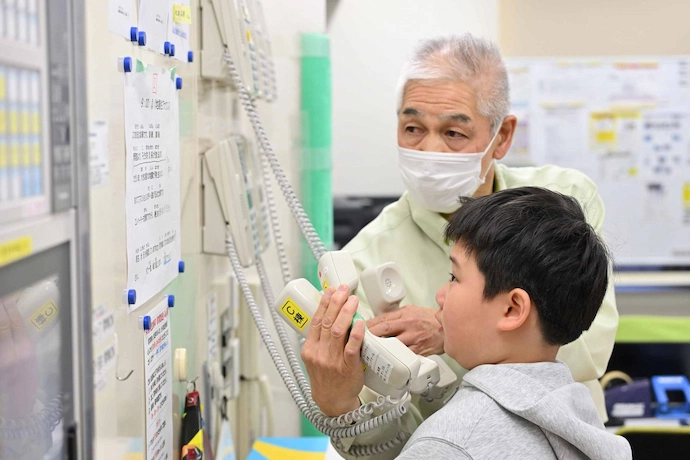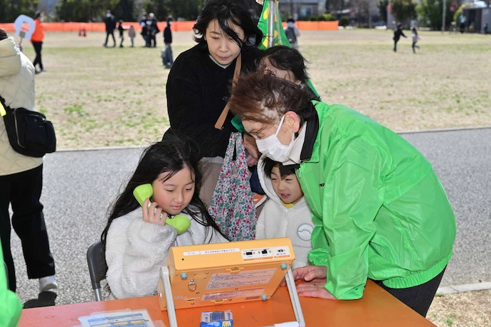 災害時に落ち着いて家族や知人の安否等の確認・連絡を行えるよう、NTT東日本および公益財団法人 日本公衆電話会の協力のもと、「災害用伝言ダイヤル(171)」の利用体験を行いました。