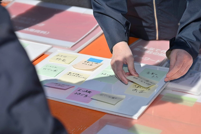 訓練参加者でチームをつくり「奏の杜の防災の備え」「防災で大切なこと」「防災を通じて目指す地域の姿」などのキーワードを募り、オリジナルの防災ソングを制作しました。「音楽のまち習志野」というまちの特色を生かし、様々な世代が「音楽」をきっかけに防災に関わることで、災害時に助け合える関係性を育むことを目指しました。完成した楽曲は今後、奏の杜パートナーズ主催のイベントやSNS等での発信が予定されています。