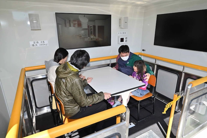 地震が起きた際に冷静な対処ができるよう、起震車で地震の揺れを体験しました。