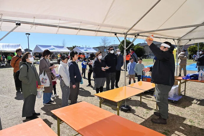 2015年3月、「ザ・パークハウス 津田沼奏の杜」(総戸数721戸)にて第1回防災訓練を開始しました。 契機となったのは「三菱地所グループの防災倶楽部」メンバーが東日本大震災の被災地を訪ね、近所同士の助け合いや人との繋がりの重要性を学んだことです。その学びを共有したことで始まったこの活動は、今ではエリア内の各分譲マンションへと広がり、エリアマネジメント組織「一般社団法人 奏の杜パートナーズ」との連携により、周辺の戸建や分譲マンションも対象となりました。津田沼奏の杜エリア全体、三菱地所レジデンス等による分譲マンション「津田沼 ザ・タワー(総戸数759戸)」なども対象として訓練を実施しています。