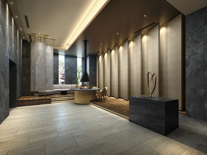 共用空間に環境配慮の姿勢を見える形で組み込むことで、三菱地所レジデンスのサステナブルなものづくりへの取り組みが感じられる空間としています。