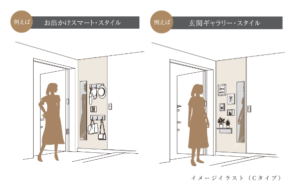 本物件には、この「EYE’S PLUS」から、住戸内で増えがちな充電式アイテムを集約して収納できる「EYE’S PLUS STORAGE CHARGE」と、玄関の壁にマグネットを取り付けることにより自由な空間にできる「EYE’S PLUS WALLSTYLE」を導入しました。