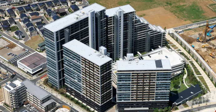 当社は、事業区域内の従前地を取得し、港区の定住促進要綱に基づき、47階建総戸数1,000戸の超高層ツインタワーマンションを開発しました。