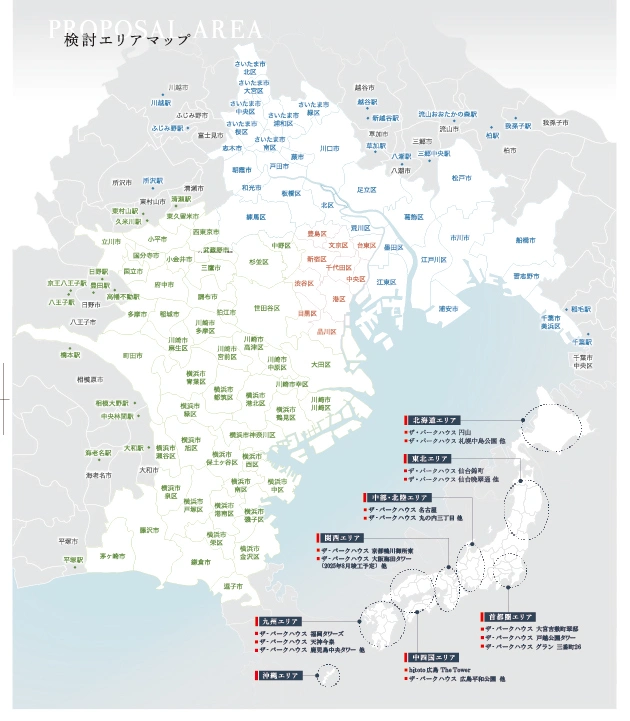 - 首都圏エリア・東北エリア・中部、北陸エリア・関西エリア・中四国エリア・九州エリア・北海道エリア