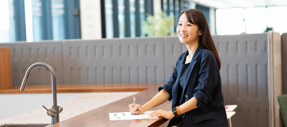 中古マンション市場の活性化と、マンションを含む住宅の省エネ化の推進。住宅選びにおける重要な2つの動向には、実は接点がありませんでした。でもそれは、2022年、リノベーション事業二部 開発第三グループ 加藤智里が、社内の廊下で新築マンションのZEH推進担当者とばったり会い、会話を交わすまでのこと。その時、この2つの要素の接点が見出されたのです。