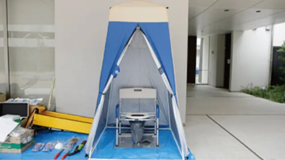 三菱地所レジデンスでは地盤の支持力、液状化に対する検証などの土地の調査から建物の耐震性や安全性に配慮した設計・施工を行っております。ザ・パークハウスにおいては、共用部に防災倉庫を標準装備し、インフラが機能しなくなった場合、復旧するまでの間に特に必要とされる、発電機・無線機・浄水器・マンホールトイレ等の防災備品を備えています。各住戸には防災バッグをお配りしています。